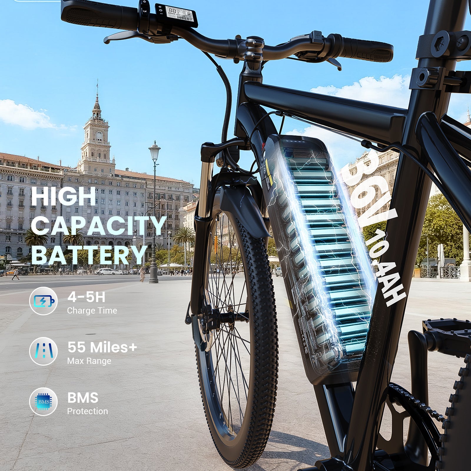 - Ready to Ride Out of the Box: Shipped 85% pre-assembled with all necessary tools and accessories included (charger, manual, toolkit). Perfect for adults and teens looking for a reliable daily commuter, off-road trail partner, or starter e-bike