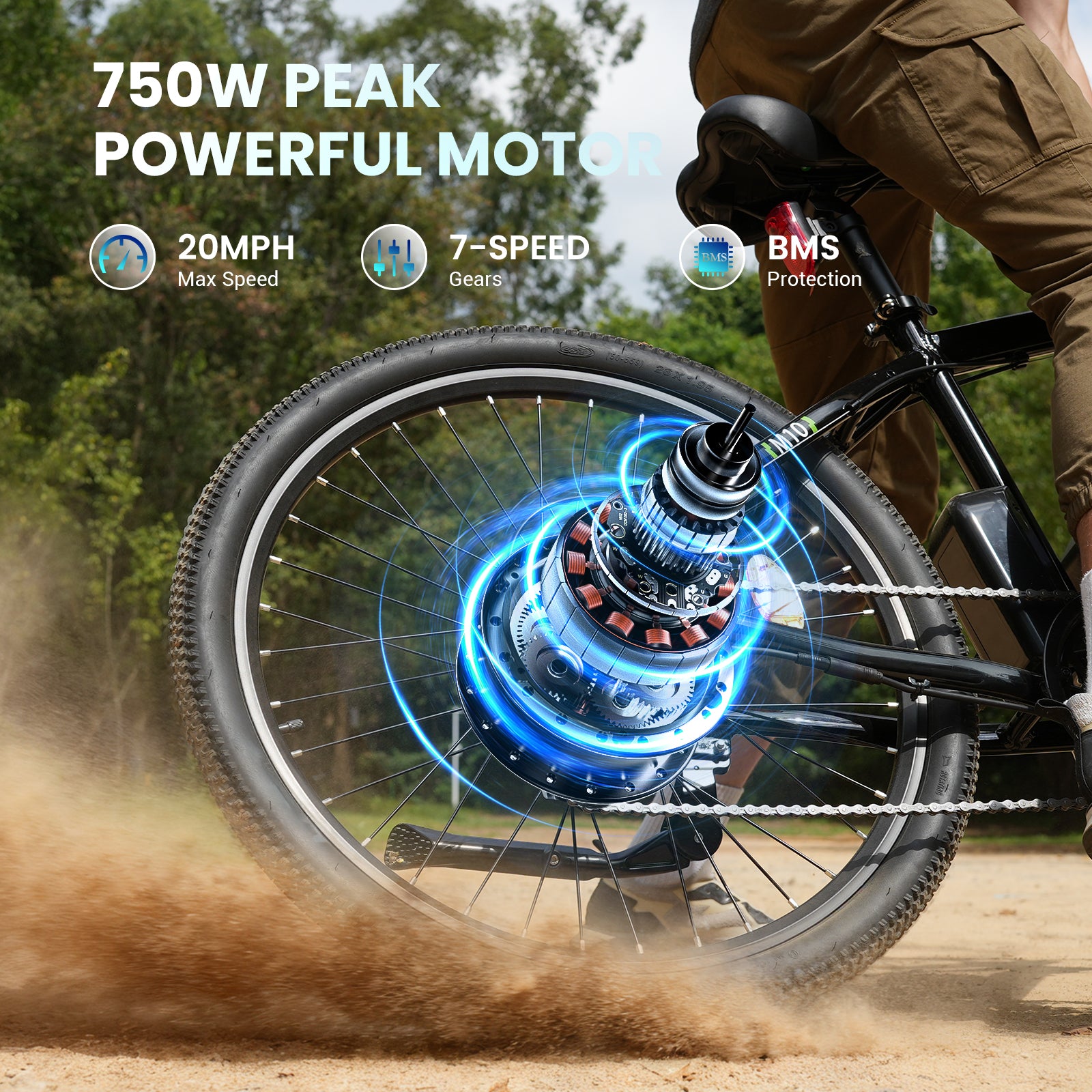 - High-Performance E-Bike: Equipped with a powerful 750W high-speed motor, this e-bike reaches top speeds of up to 20MPH. Experience up to 39-43 miles in full electric mode and 45-55 miles in pedal assist mode (PAS), making it ideal for daily commutes and adventurous trails