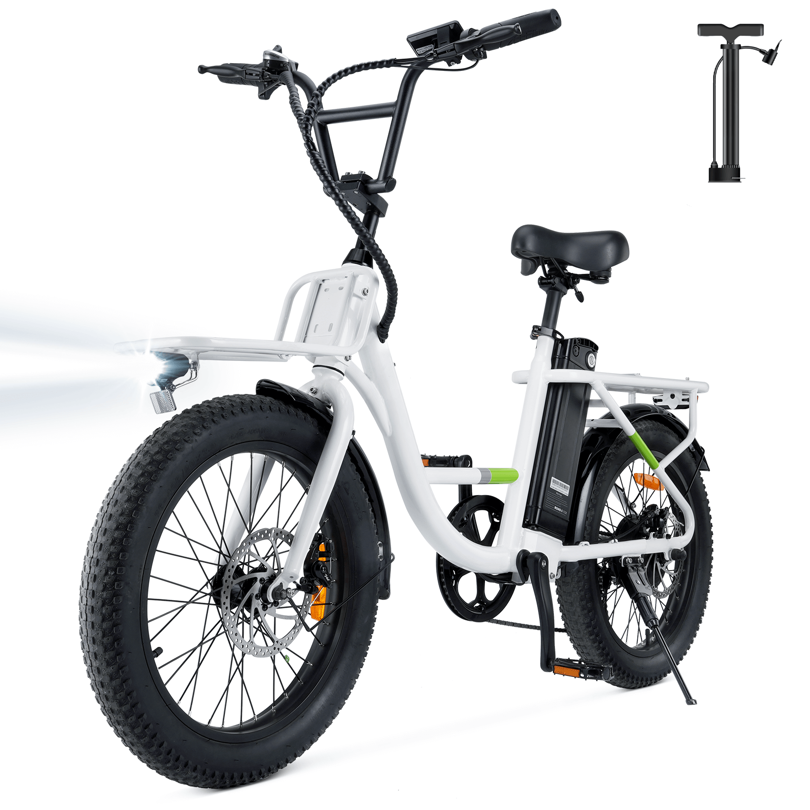 - Cargo Freedom: Effortlessly carry your essentials with a front rack and durable rear rack, supporting up to 330 lbs. Enjoy smooth city rides with a comfortable step-thru frame and versatile cargo options