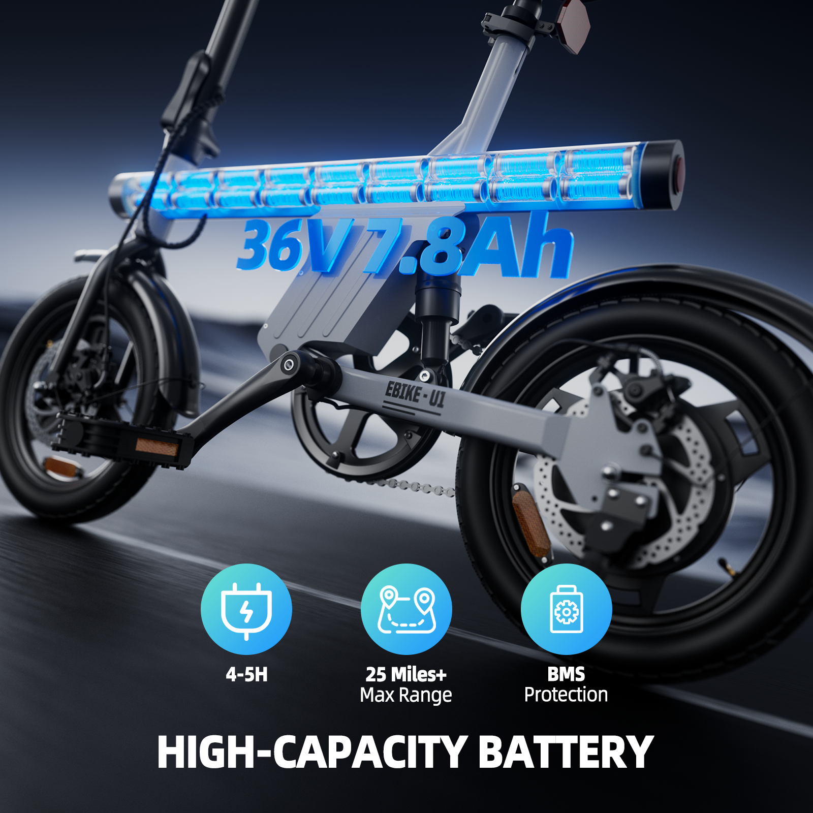 - Rapid Charge: Never wait long to ride! Our hidden 36V 7.8Ah battery fully recharges in just 3-4 hours and provides up to 25 miles of pedal-assisted range. The sleek frame-integrated design protects your battery while maintaining clean aesthetics