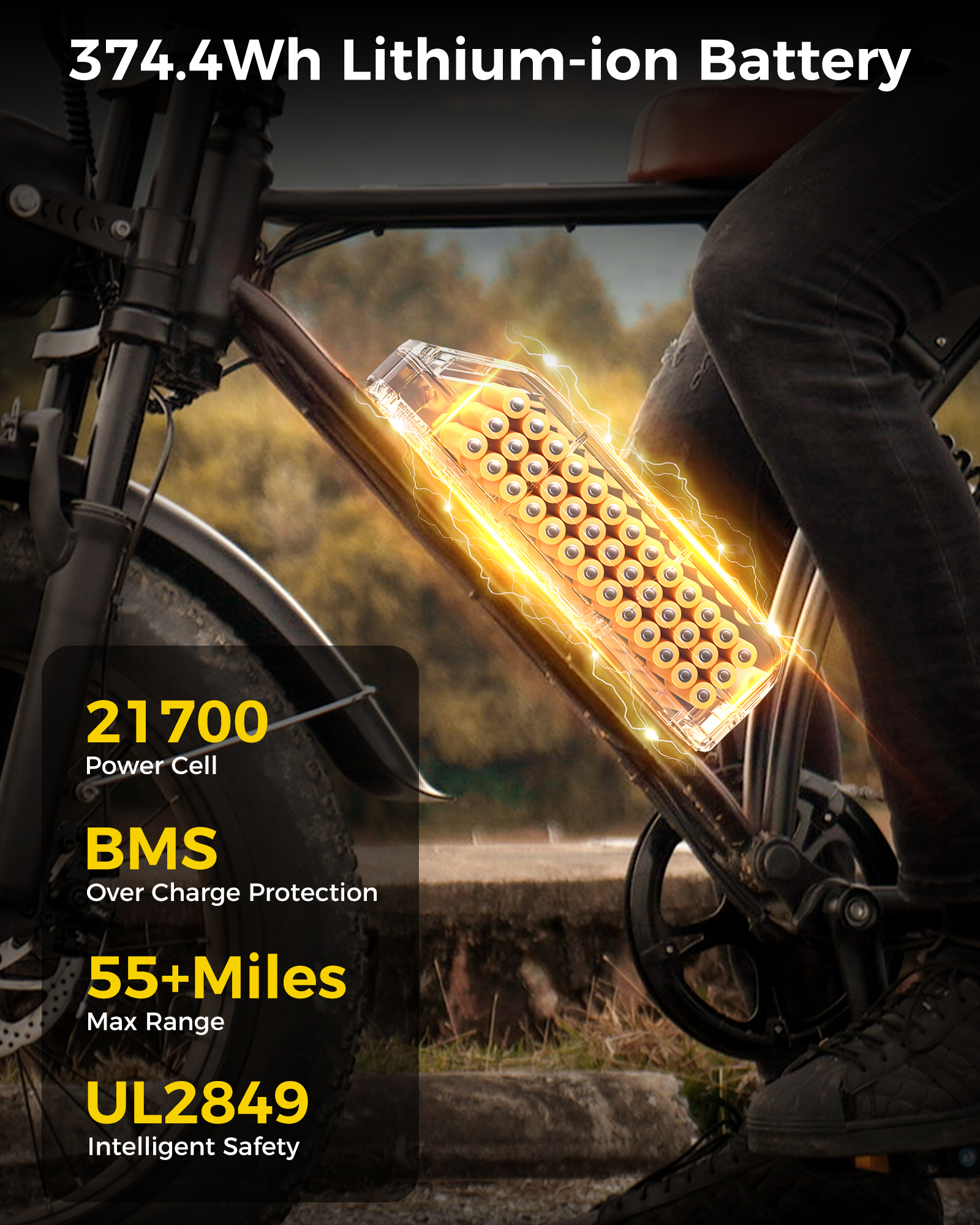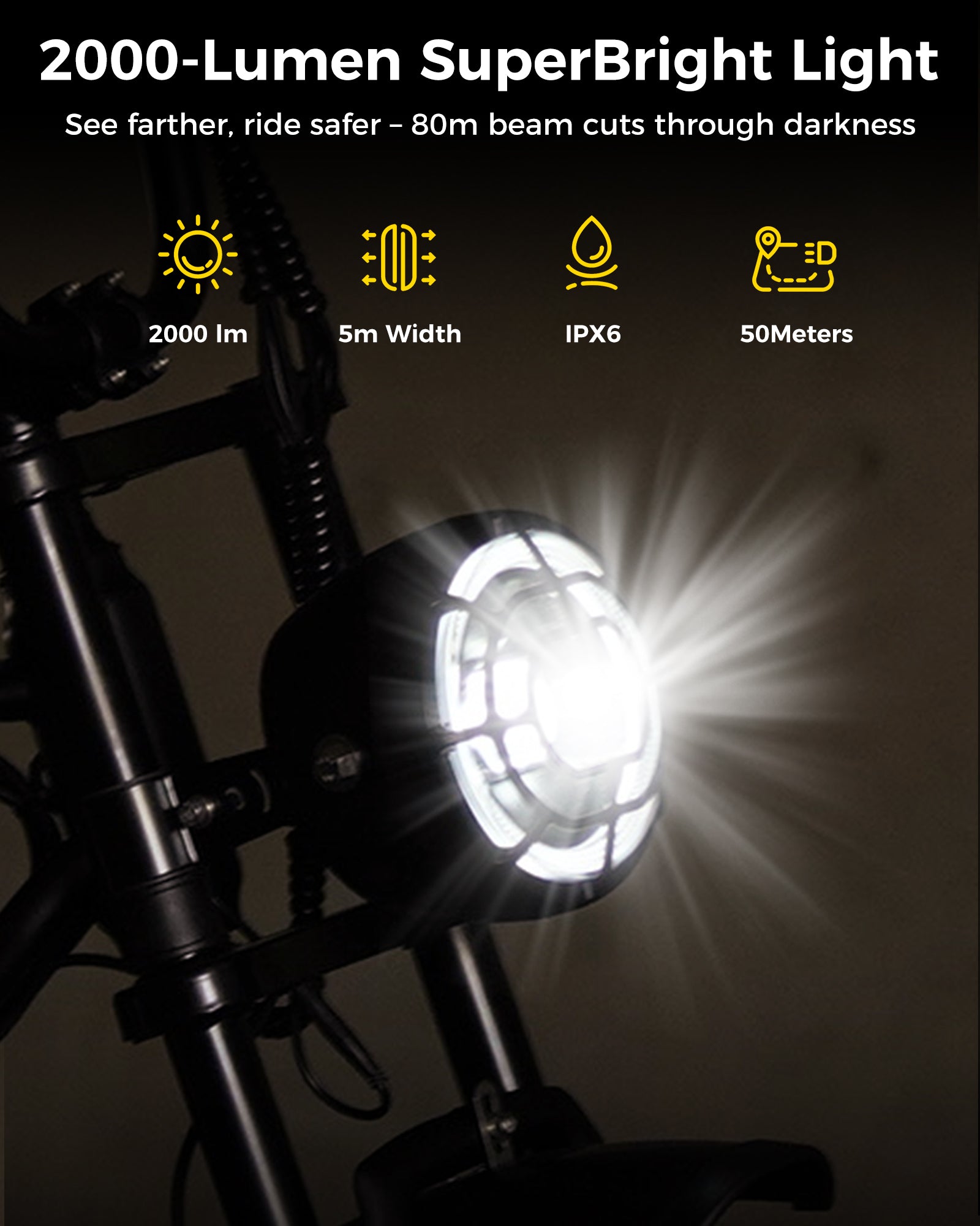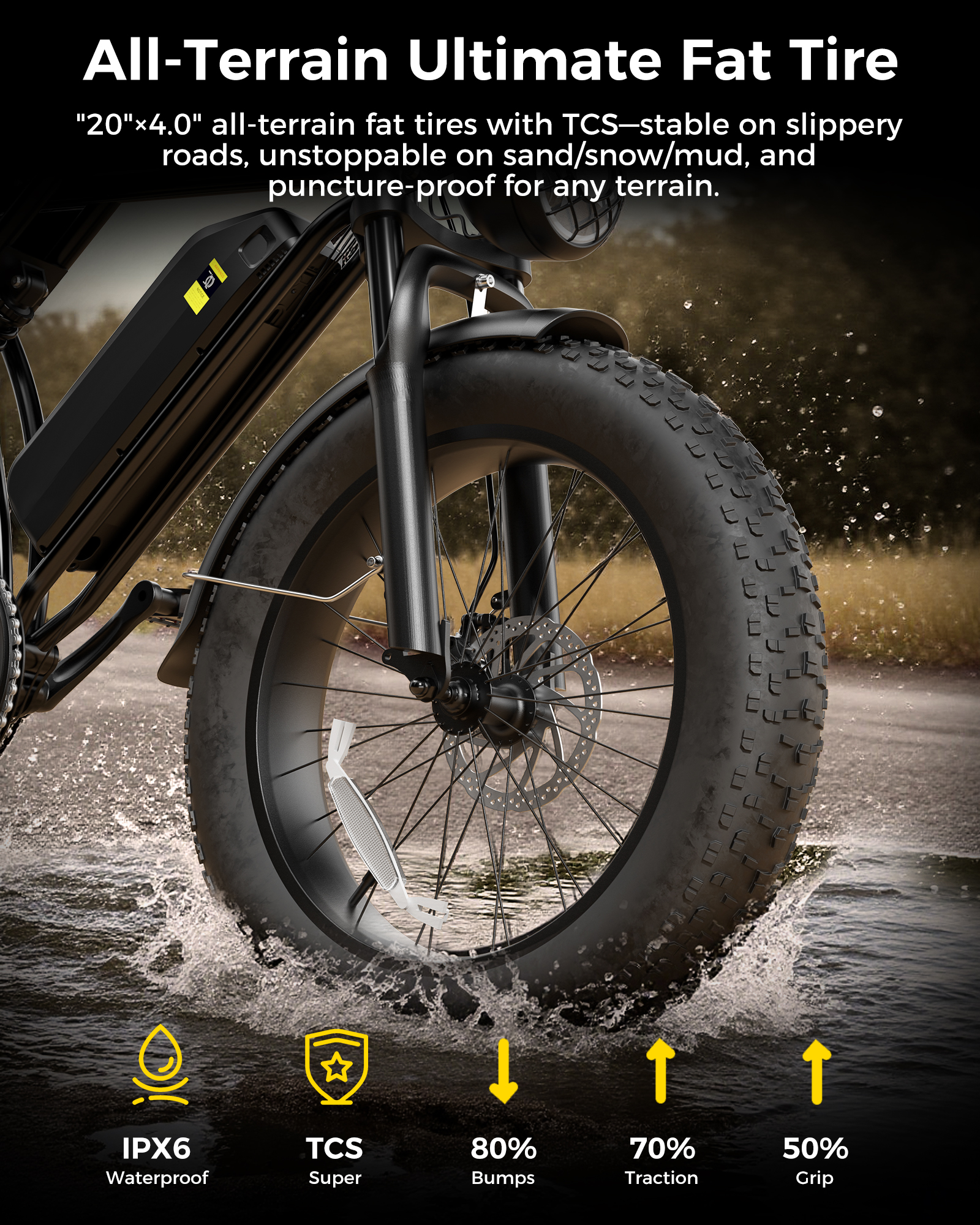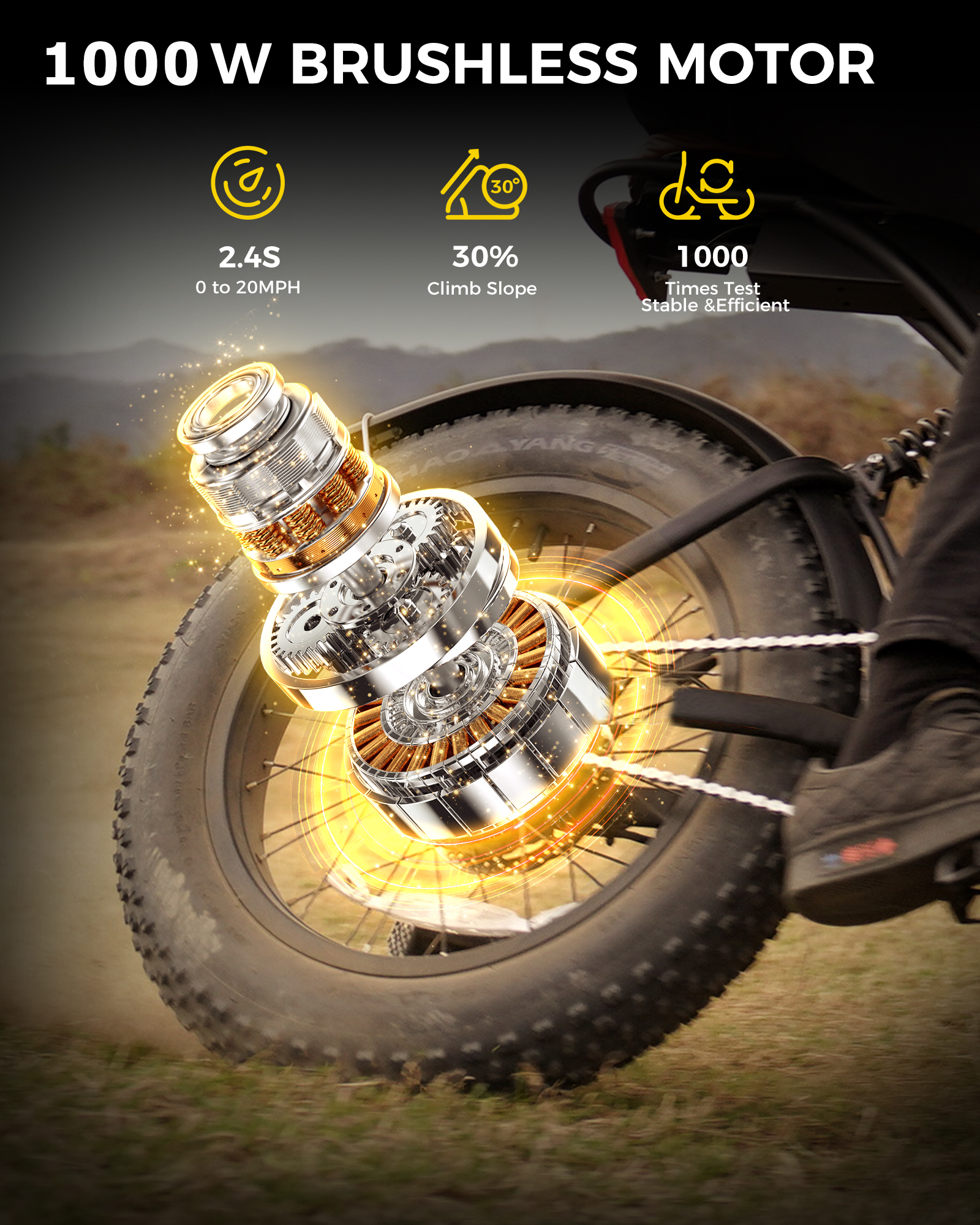 Flydone Electric Bike for Adults, Peak 1000W Electric Motorcycle 20" Fat Tire Dirt Bike, 32KMH Max 80-100KM PAS Range Off Road, Beach Mountain E Bike